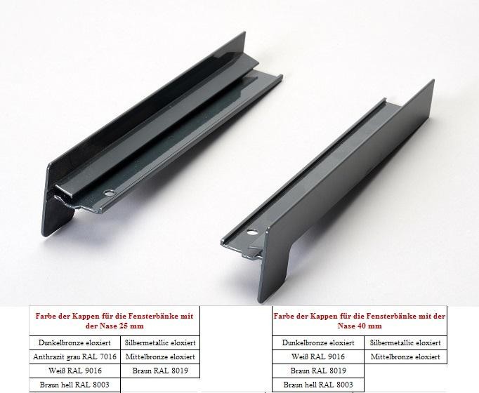 Die Kappen sind beiderseitig in der Länge von 600 mm